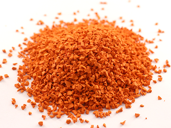 EPDM颗粒主要是由三元乙丙橡胶,橡胶软化油,碳酸钙以及色粉等组成。我司生产的EPDM颗粒主要原料三元乙丙轻质橡胶,全部采用进口,质量有保证。其主要特点是:含胶量足,比重轻;抗老化,耐腐蚀,耐色变;弹性好,粘接性强;耐磨防滑,色彩鲜艳,维护方便,全天使用。
